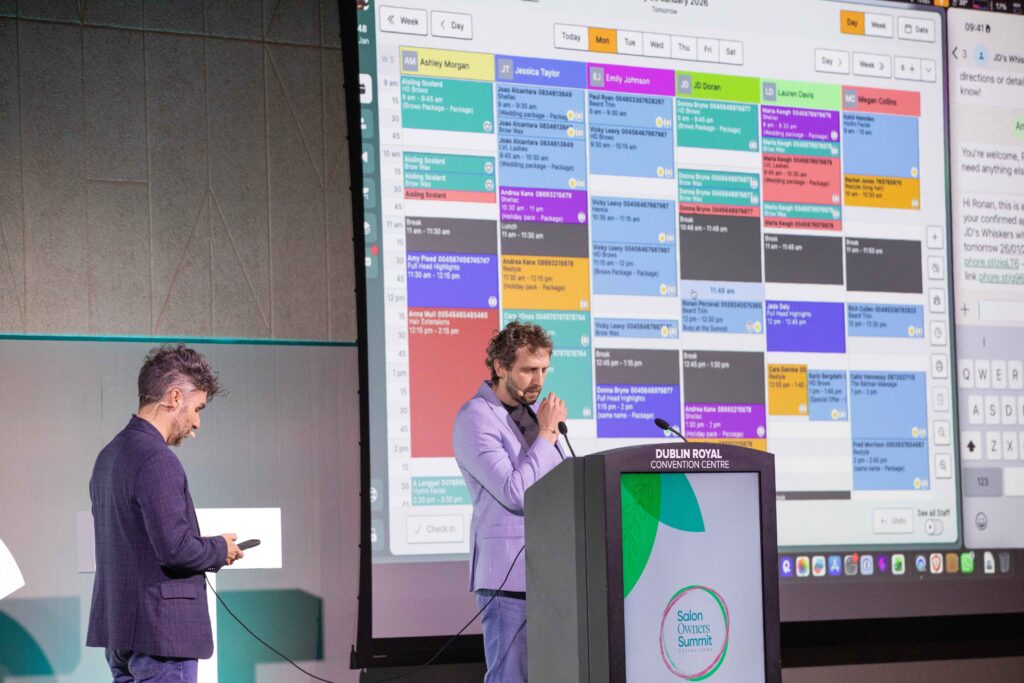 That lively start transitioned seamlessly into a practical, product-focused session designed to help salon, spa, and clinic owners get more from their systems. Aoife Hannigan and Conor Cunningham took the stage to introduce the session, addressing a common piece of Summit feedback: Attendees often leave excited about new features, but unsure how to implement them. This year’s approach focused on live demos, real-world workflows, and clear walkthroughs, with Summit attendees receiving exclusive access to select new features for a two-month period.