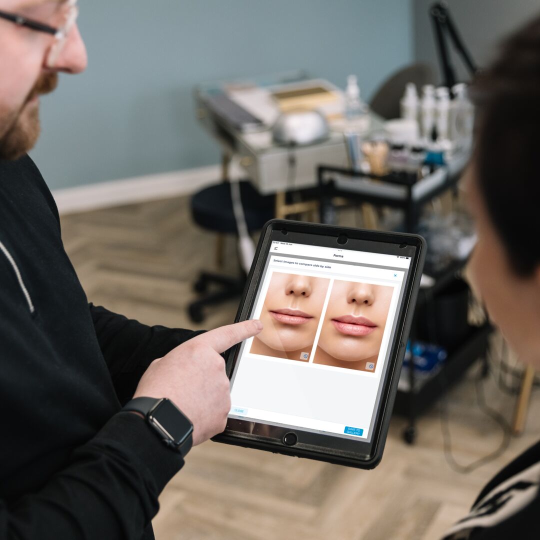 Upgrade consultations with HD photos, side-by-side comparisons, face mapping, and structured treatment plans, with everything stored securely on the client card.