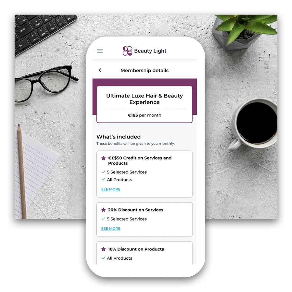Create flexible, recurring plans that boost loyalty and cash flow; service bundles, monthly credit banks, or VIP discounts. Clients redeem perks easily, staff get clear Membership indicators.